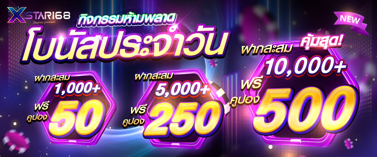 สุดท้าย อย่าลืมใช้โปรโมชั่นและโบนัสที่ xstar168 มอบให้ ทั้งโบนัสต้อนรับสมาชิกใหม่ โบนัสเติมเงิน หรือโปรโมชั่นพิเศษต่าง ๆ เพราะสิ่งเหล่านี้จะช่วยเพิ่มทุนและโอกาสในการชนะ แต่ต้องอ่านเงื่อนไขให้ละเอียดและใช้อย่างฉลาด